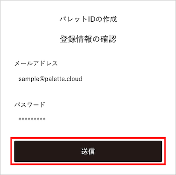「ご登録情報」に、削除するパレットIDとメールアドレスが表示されます。